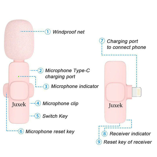 2 Pcs Pink Wireless Lavalier Mini Microphone for phone pad, Professional Lapel Mics