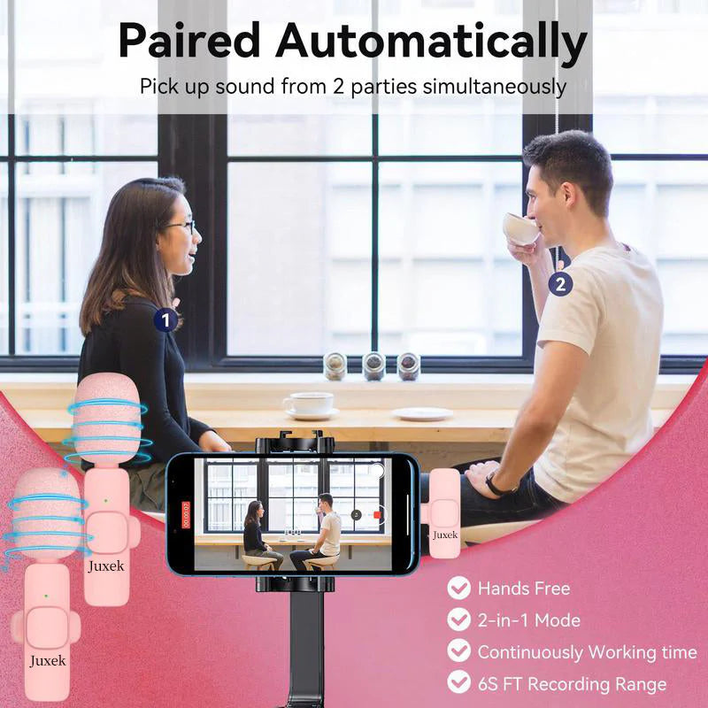 2 Pcs Pink Wireless Lavalier Mini Microphone for phone pad, Professional Lapel Mics