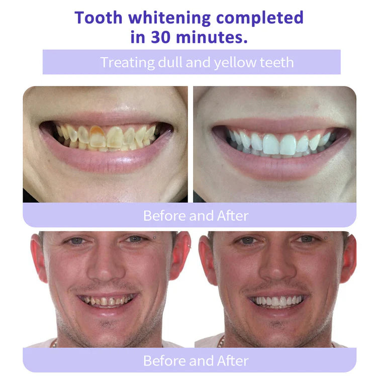 Look at these amazing âbefore & afterâ resultsâno hype, just real brightness. The violet-toned powder works with color-correcting technology, effectively targeting stubborn yellow tones to reveal a whiter, more radiant smile.