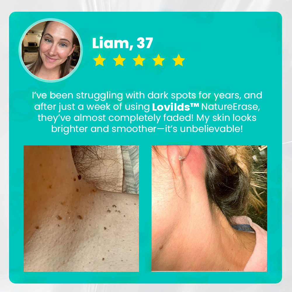 After just one week, the transformation was incredible. My skin tag and blemishes were nearly gone, and my skin looked clear, bright, and flawless. I feel so much more confident now! The Lovilds™ NatureErase Instant Mole & Spot Removal Gel has truly exceeded my expectations, and it’s now an essential part of my skincare routine.