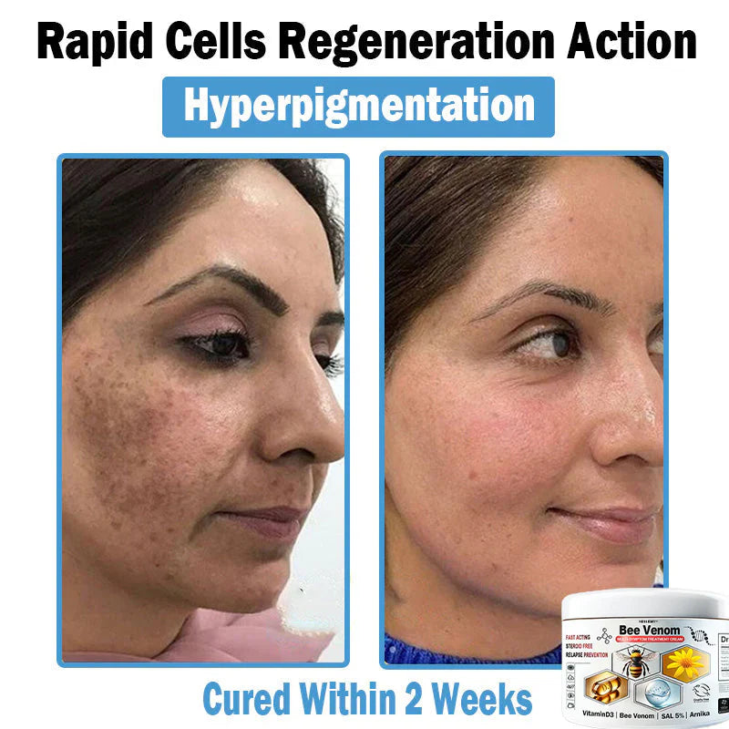 𝑩𝒆𝒆 𝑽𝒆𝒏𝐨𝒎 is rich in bioactive compounds like melittin, apamin, and adolapin, which have been scientifically shown to reduce inflammation by inhibiting inflammatory pathways and improve blood circulation to affected areas, delivering nutrients vital for skin repair. Regular use of this cream can effectively soothe chronic skin conditions like eczema, psoriasis, and rosacea, promoting smoother, healthier skin naturally.